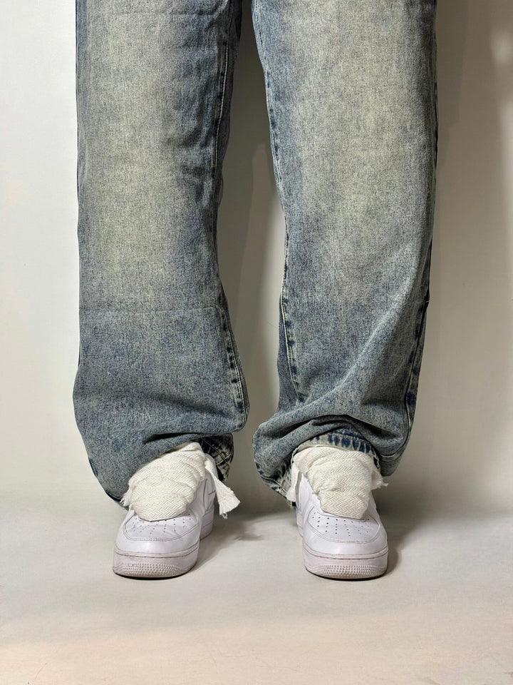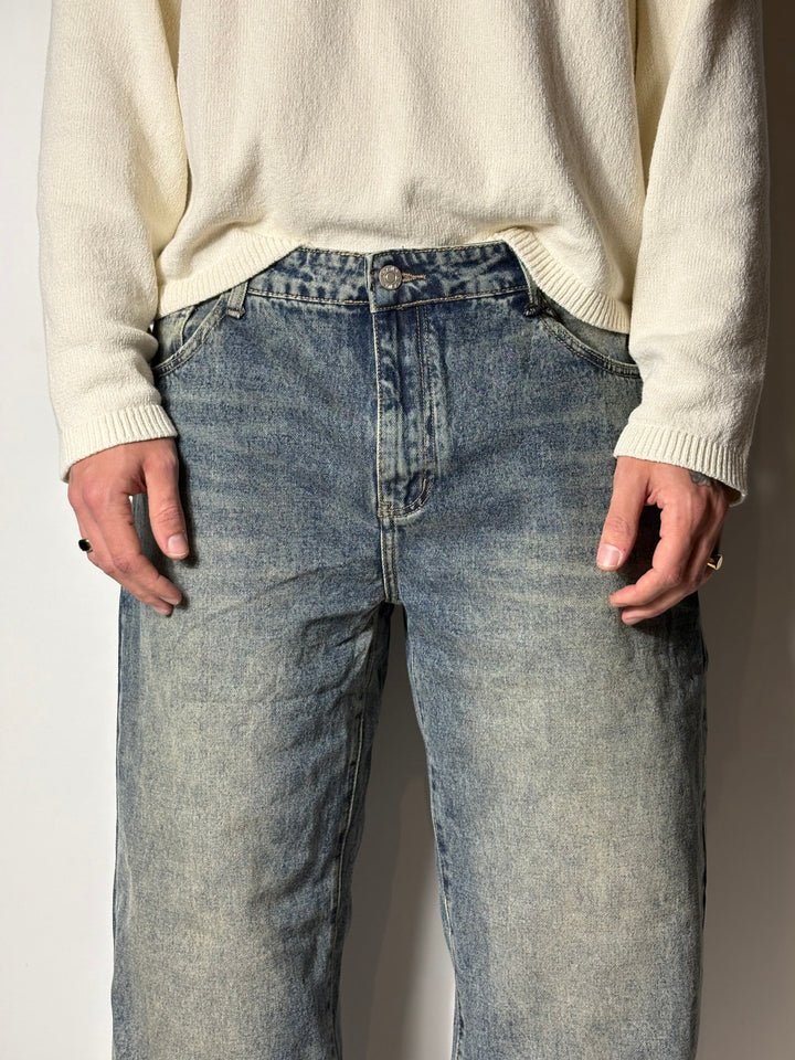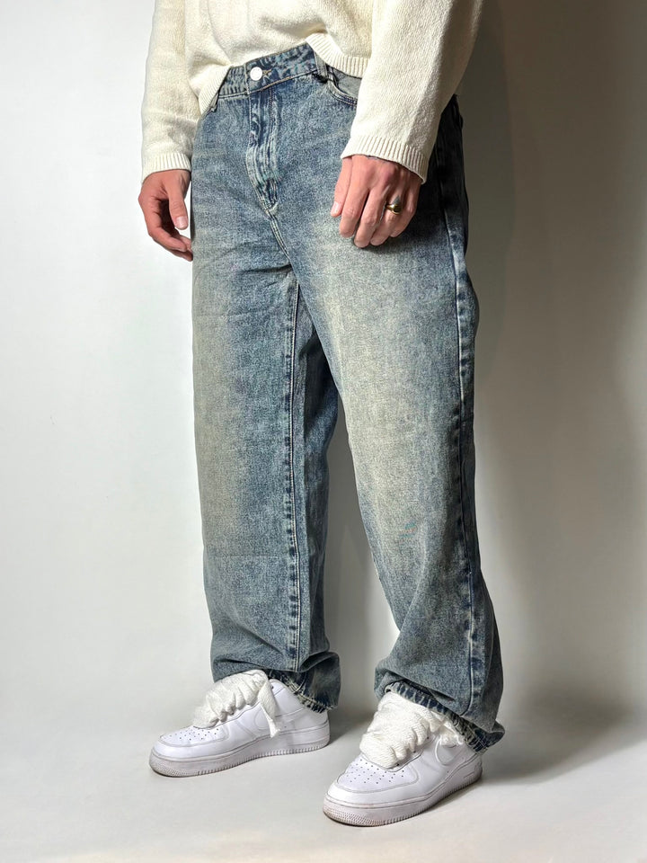 jeans baggy vestibilità over il modello in foto è alto 1,86x90kg indossa una 52