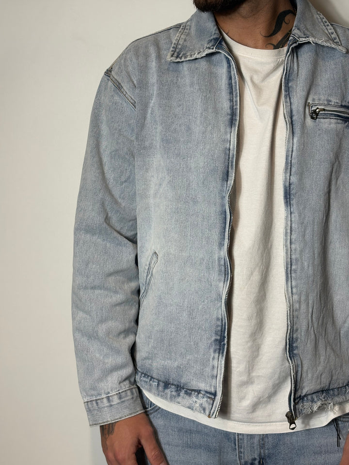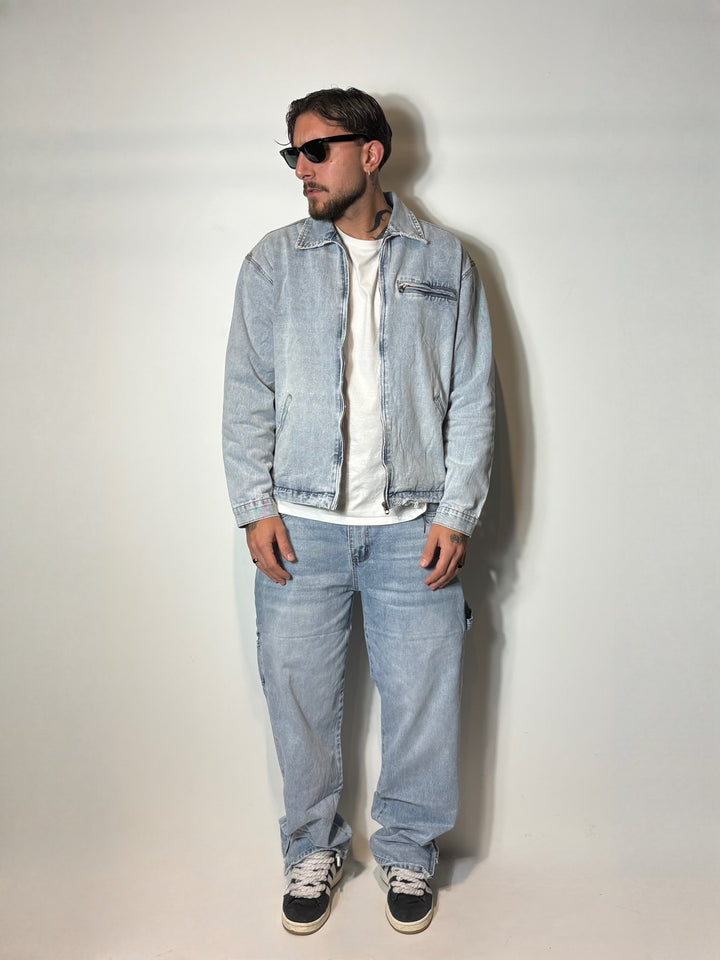 coordinato in denim , il modello in foto è alto 1,86x90kg indossa una xl