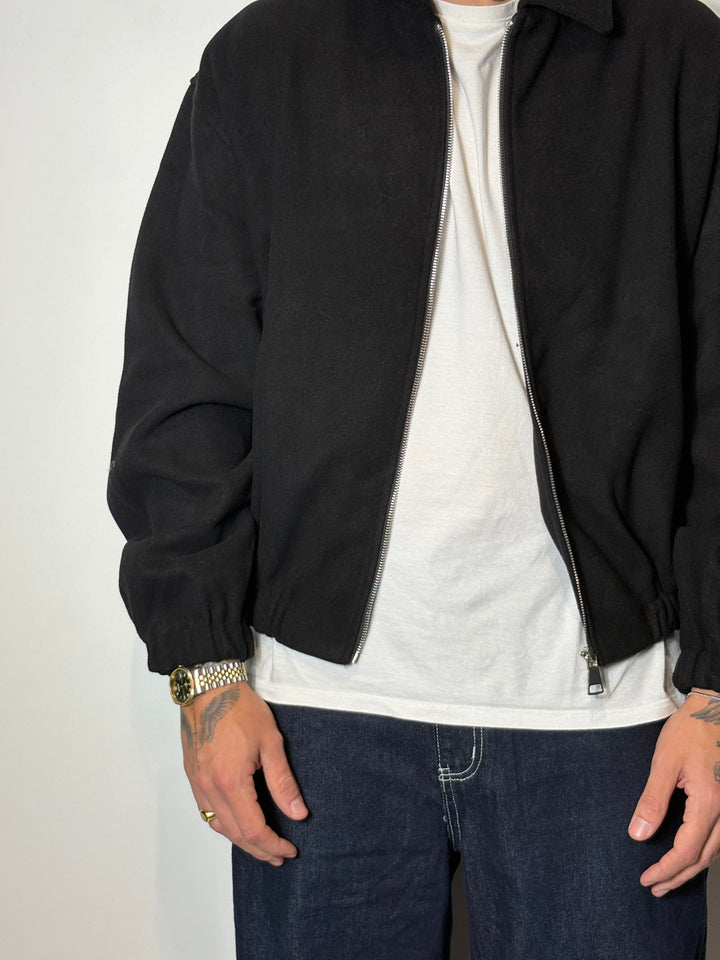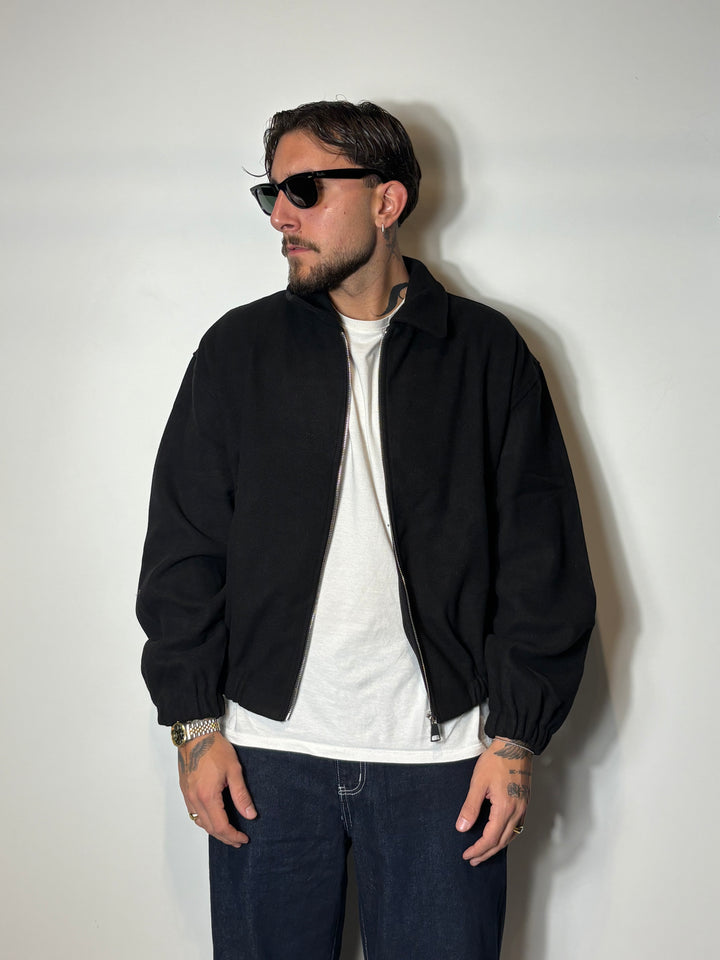 jacket con vestibilità cropped, il modello in foto è alto 1,86x90kg indossa una l