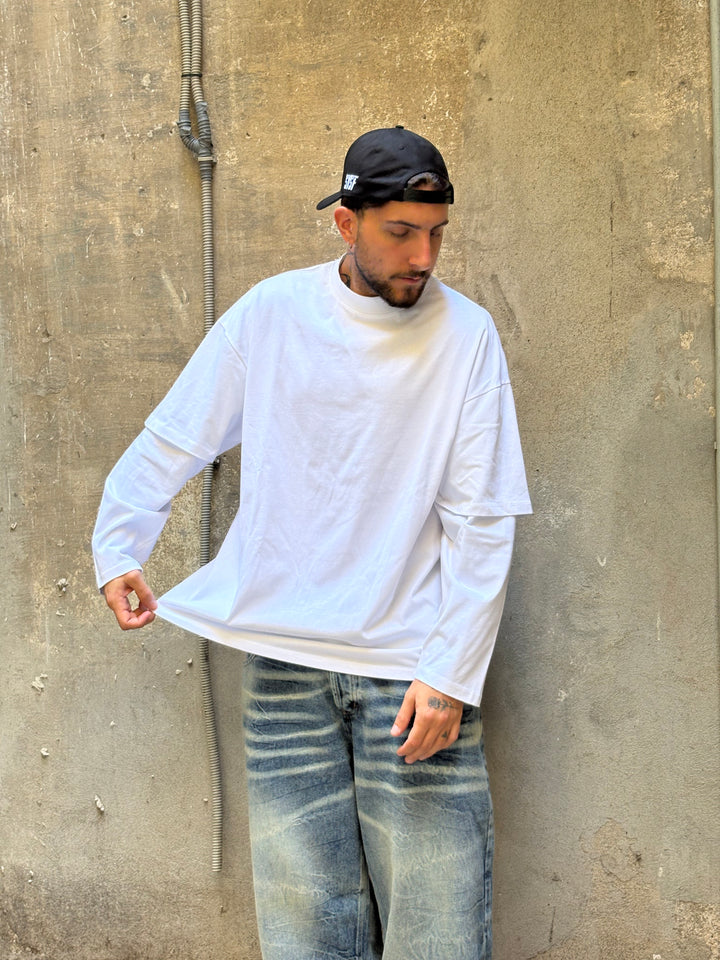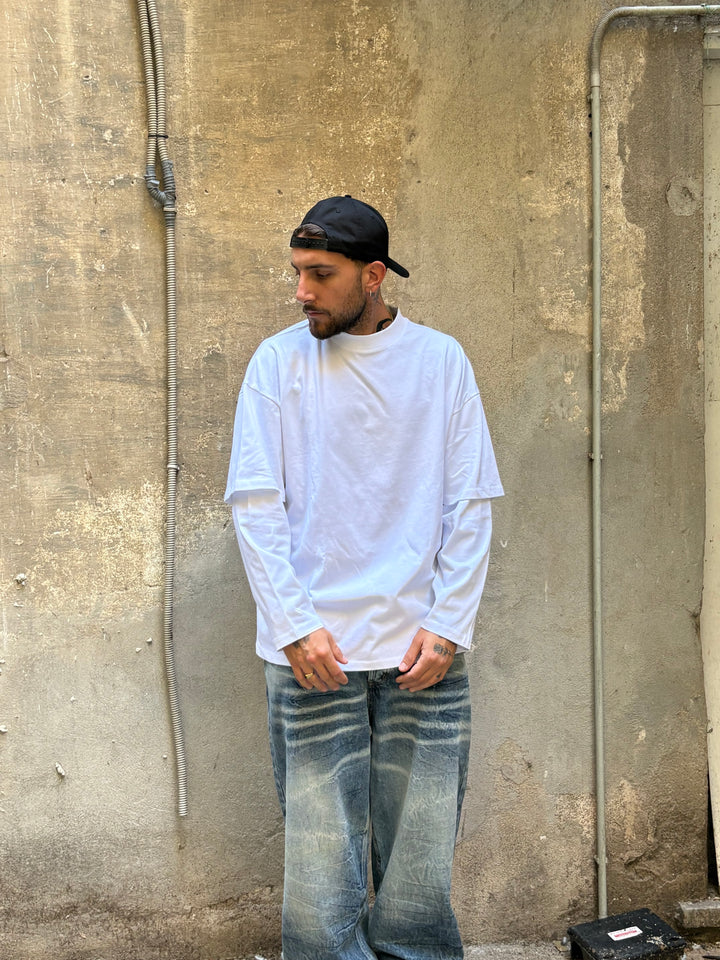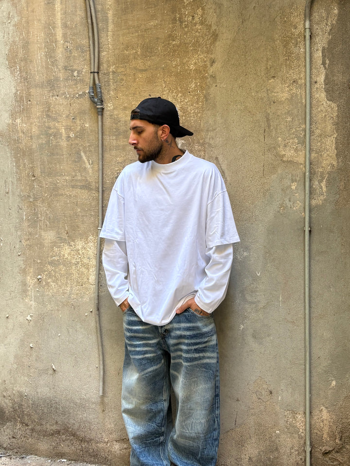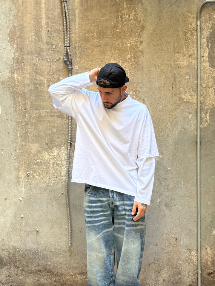 long sleeve doppia manica cotone jersey vestibilità OVER il modello in foto è alto 1,86x90kg indossa una xl